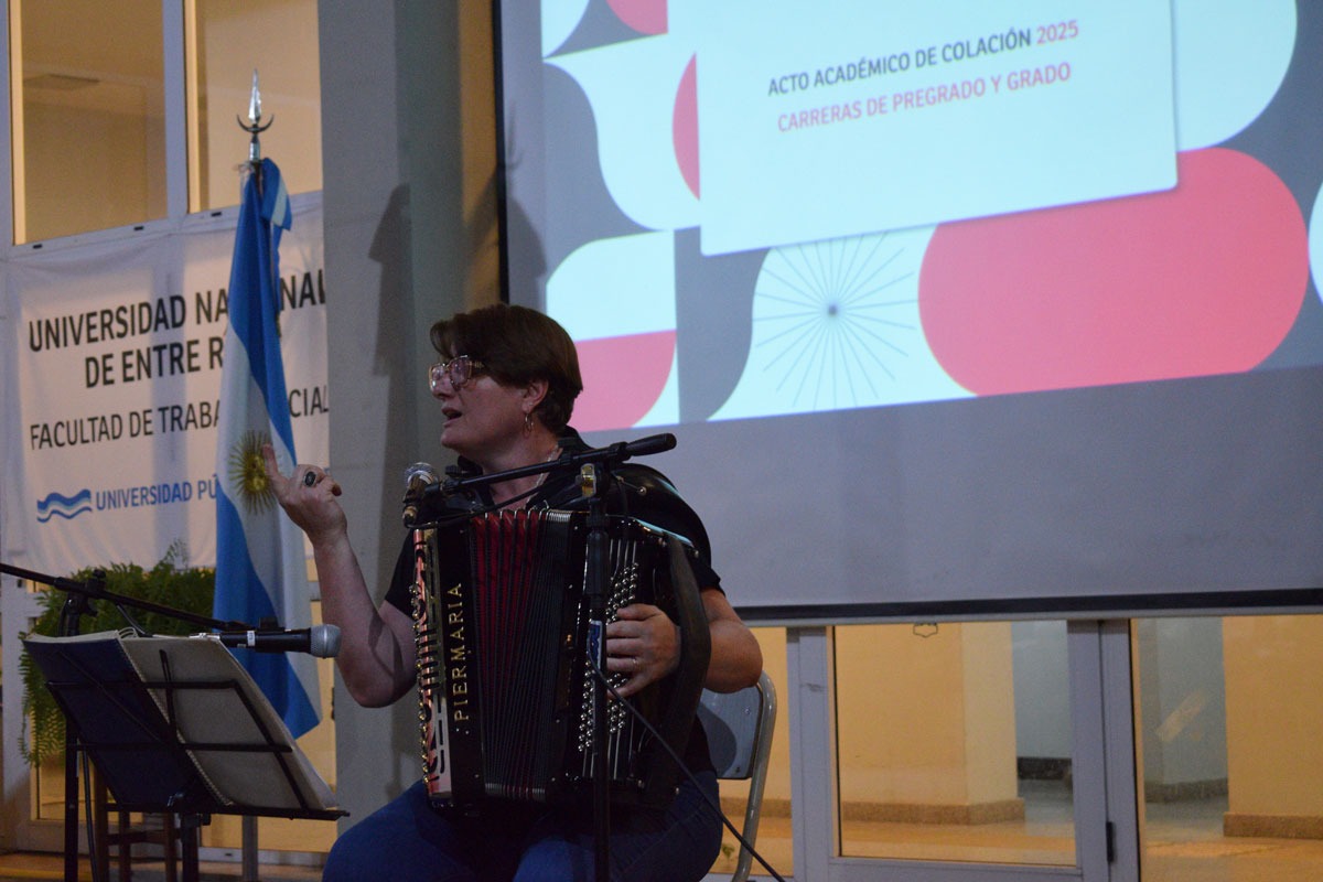 En el cierre, se compartió un número musical, a cargo de Marcia Müller, cantautora, acordeonista, docente, investigadora, intérprete comprometida de la música de raíz folklórica del litoral argentino